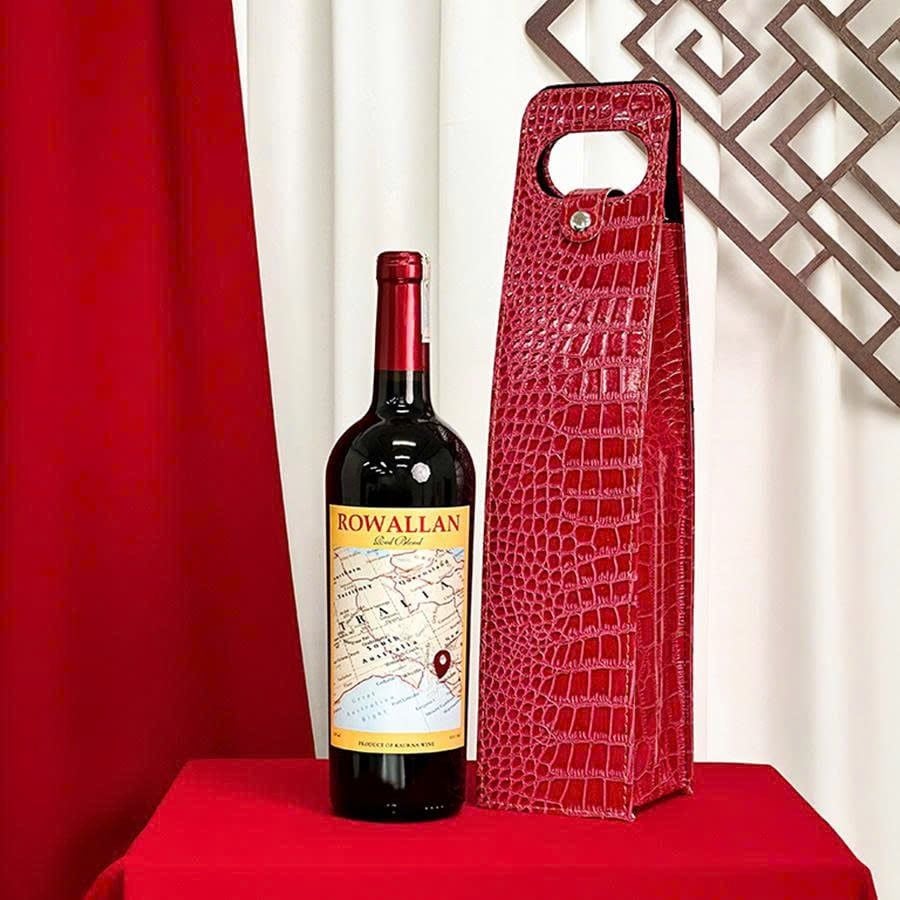 Thiết kế tinh giản mà sang trọng, bề mặt giả da cá sấu mềm mịn, chống trầy xước và dễ lau chùi. Form túi cứng cáp giúp bảo vệ chai rượu an toàn.